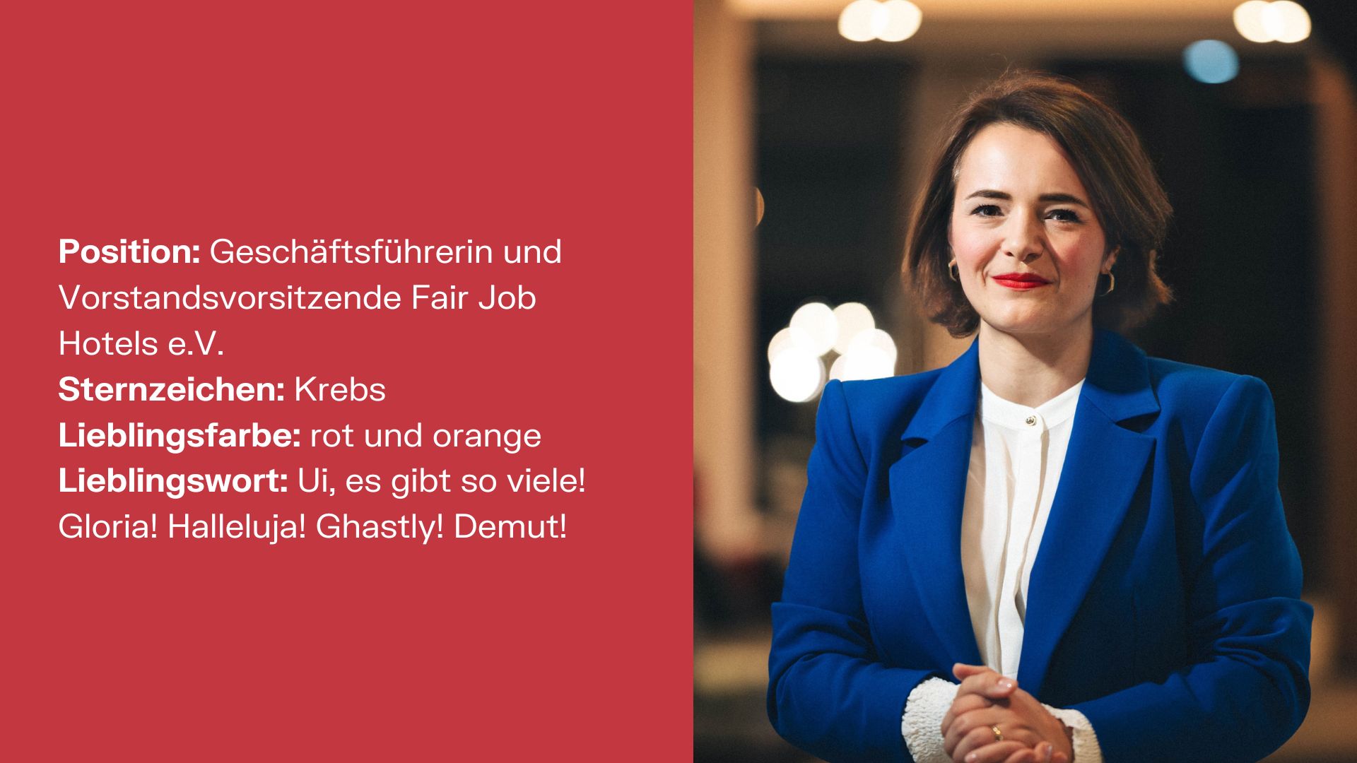 Und ich wünsche mir, dass Fair Job Hotels auch dann noch ein Ort ist, an dem junge und erfahrene Hoteliers selbstverständlich zusammenkommen zum Austausch, zum Lernen und zur gemeinsamen Weiterentwicklung. Und, dass es für Hotels aufgrund des spürbaren Mehrwerts klar ist, Teil von Fair Job Hotels zu sein.